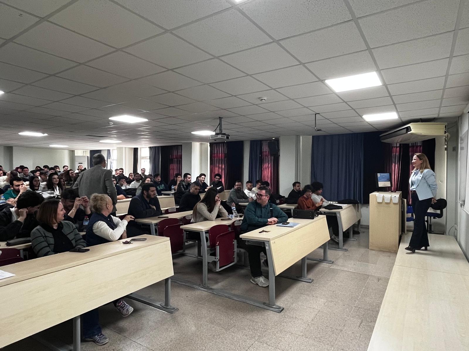 26.03.2026 Perşembe günü saat 13:00’te B202 no.lu derslikte İnşaat Mühendisleri Odası İzmir Şubesi Başkanı Bengi ATAK’ın gerçekleştirdiği “Kariyer Yolculuğunda Sivil Toplum Kuruluşlarının Rolü” başlıklı söyleşi yapılmıştır.